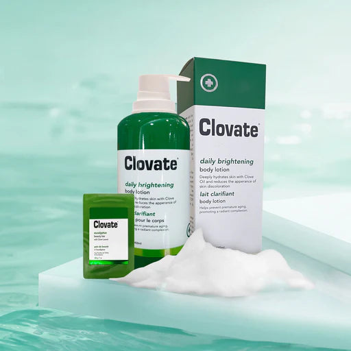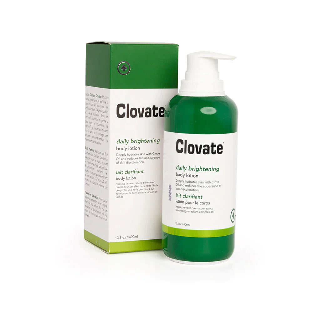 - Clovate Daily Brightening Body Lotion reduces dark skin discoloration and enhances skin's clarity and radiance due to its brightening actives “Alpha Arbutin” and “Lactic Acid”. Rich with Vitamin E, it works to soften and hydrate dry, rough, flaky skin. Vitamin C, a powerful anti-oxidant, smoothens the skin and protects it from environmental pollutants, keeping it soft and supple.