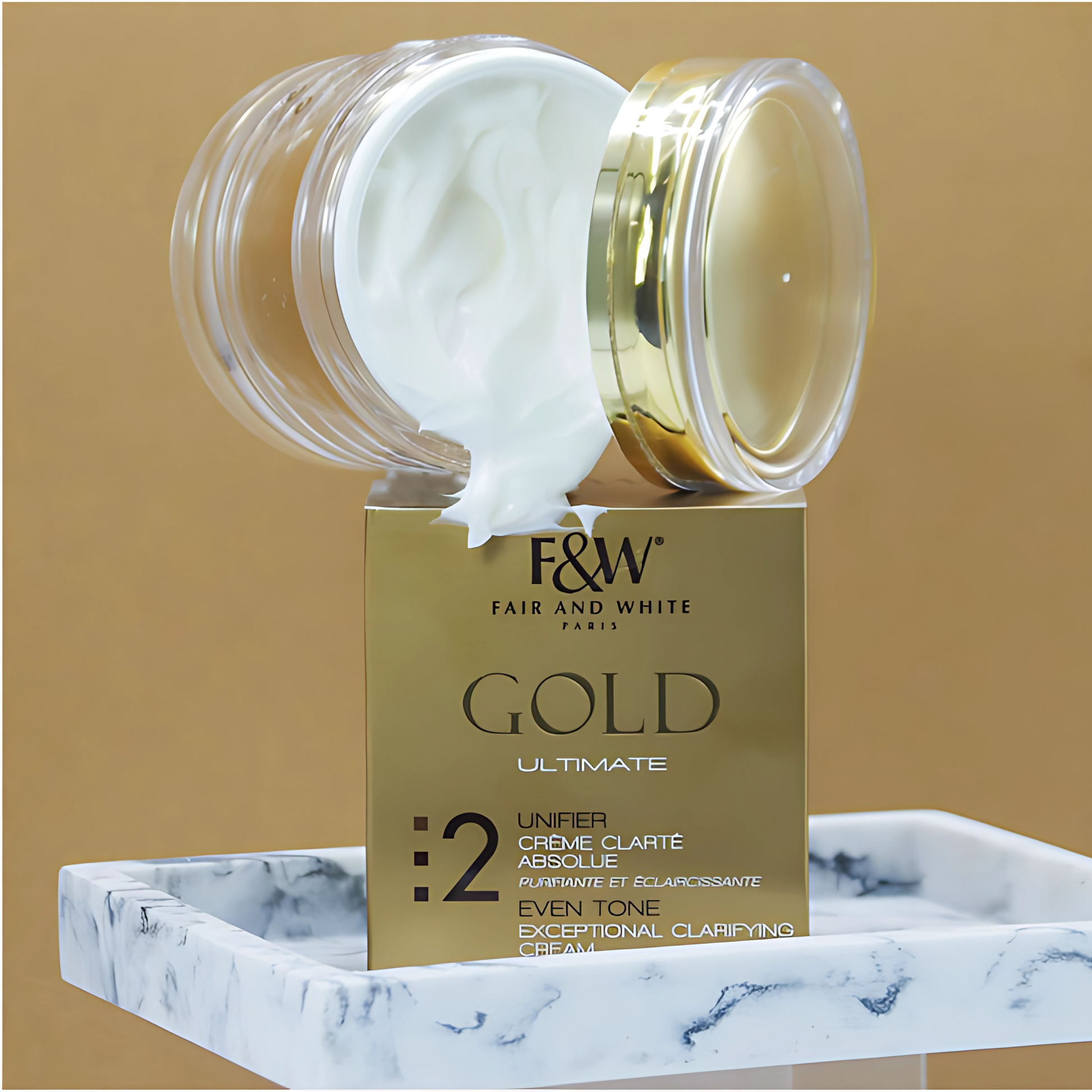 Description: Fair and White's Gold Exceptional Clarifying Cream purifies, nourishes and softens skin, promoting a brighter luminous, silky complexion.