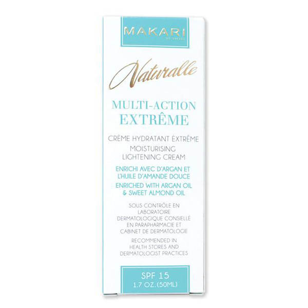 Makari Naturalle Multi-Action Extreme Moisturizing Lightening Cream is enriched with Argan and Sweet Almond Oil. This skin lightening moisturizing cream restores skin's natural moisture, prevents breakout removes under eyes dark circles, regulates secretion of sebum (good for oily skin), Great for acne prone skin, This cream moisturizes, while even toning and lightening your skin tone gradually. It helps reducing the appearance of discolorations and pigment marks with a targeted blend of vegeclairine, Argan and Sweet Almond Oil.